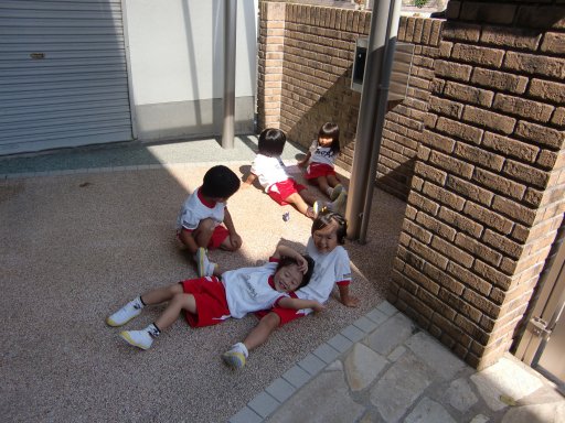 幼稚園でも寒かったのか、朝から年少組のお友だちが日なたを見つけて