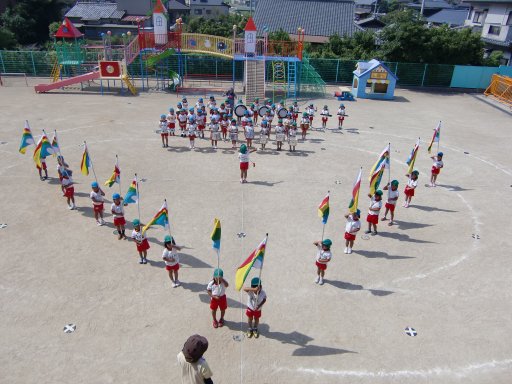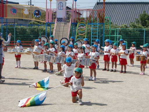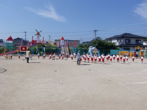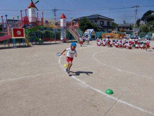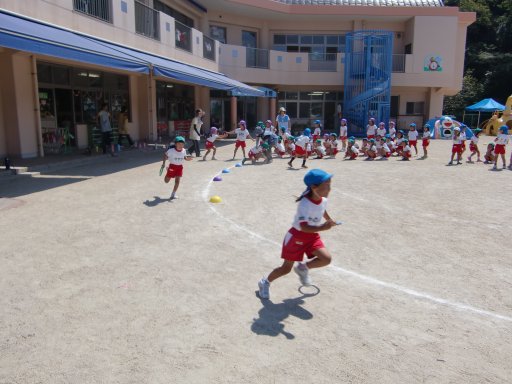 一方、同時刻 相浦幼稚園でも組体操・バルーン・つなひき・かけっこの