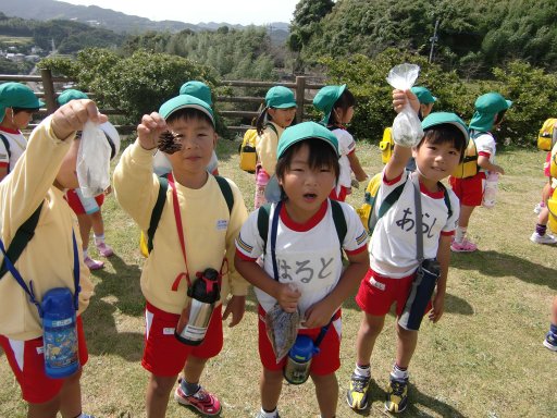 収穫?した“しいの実”や“まつぼっくり”、“どんぐり”を袋に詰めて記念に!