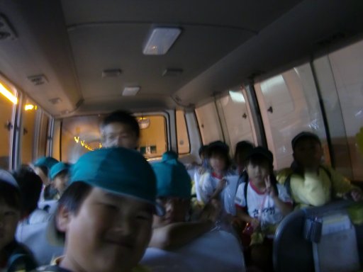 後ろには黄色バス、斜め後ろにはビートスイミングのバス