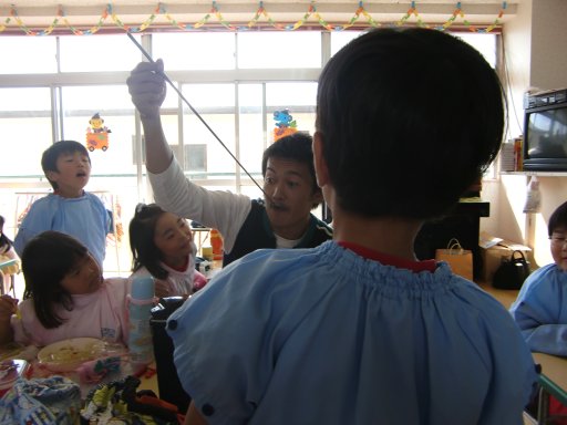 後ろのほうで見ている男の子は、思わず一緒に口を開けてしまってます