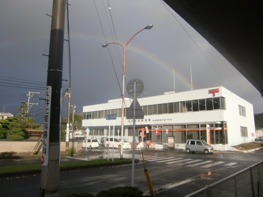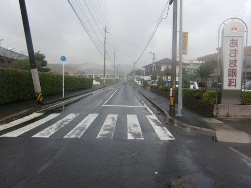 道路よりも先に、虹がかかっていました