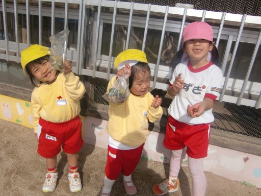 昨日の強風は、園児が喜ぶモノを残してくれていました