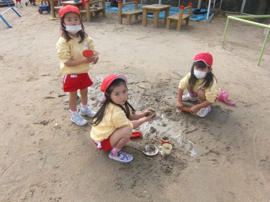 いつもはベチャベチャの泥あそびが好きな園児も、この日は上品に“花あそび”♪