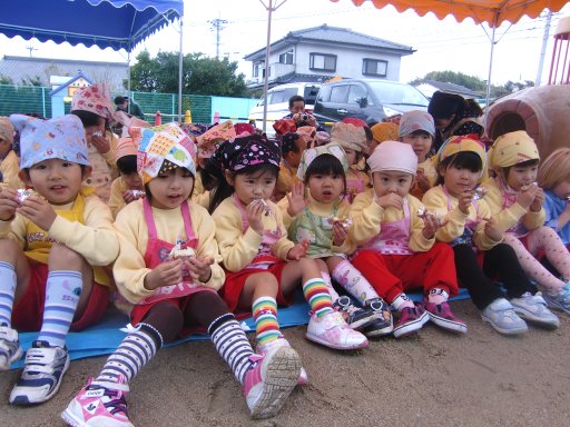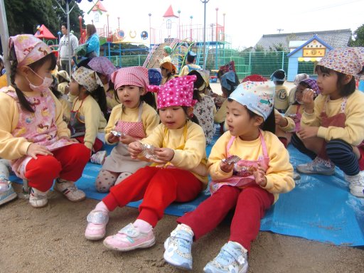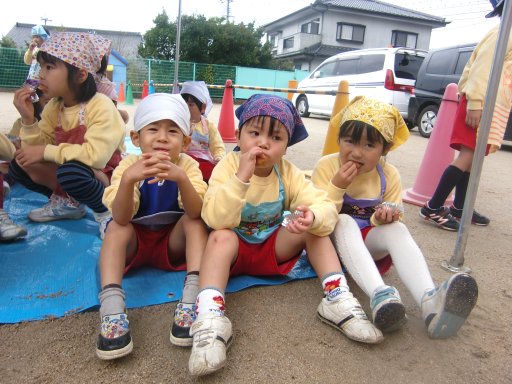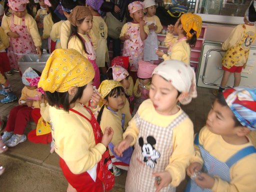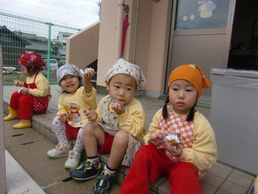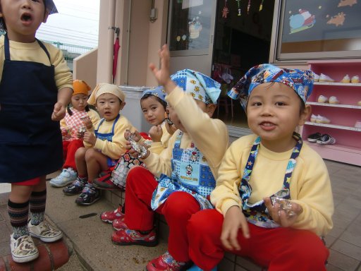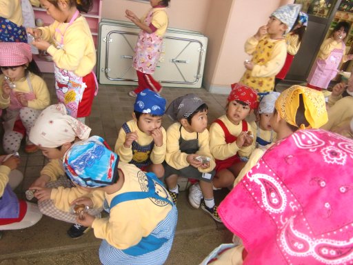 できたての一番オイシイ所を園児が子どもの特権で・・