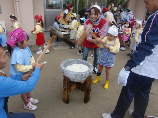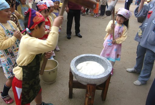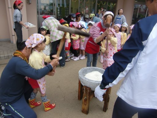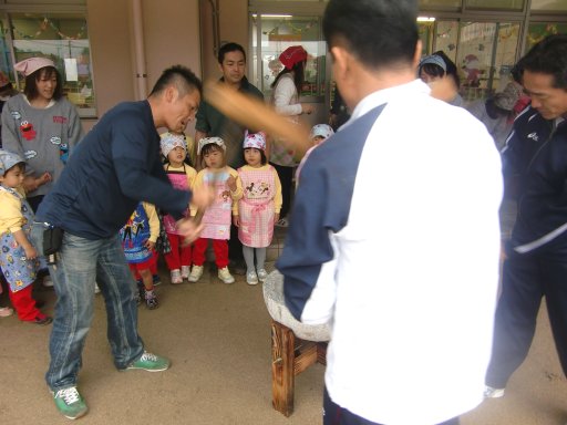 一番オイシイ所を園児が子ども用の杵で