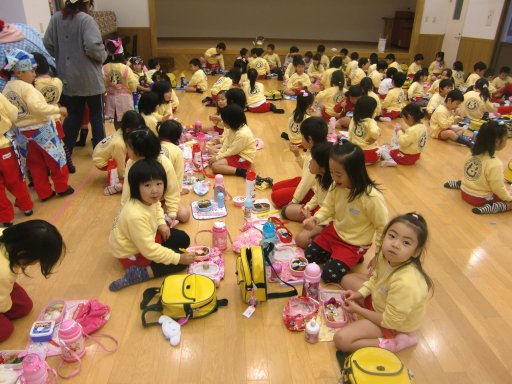 おゆうぎ室へお邪魔して、みんなでお弁当