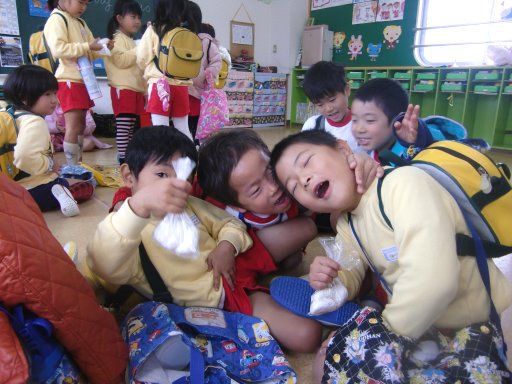園に戻ってお土産のお餅をもらい、