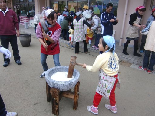 食べるだけじゃなく、お友だちが餅をついているのをうらやましそうに・・