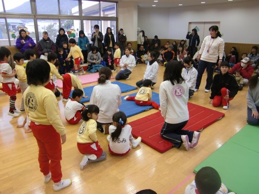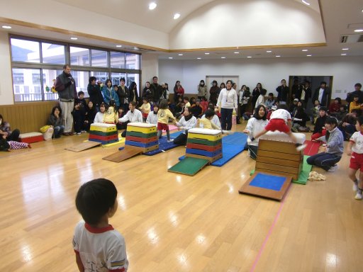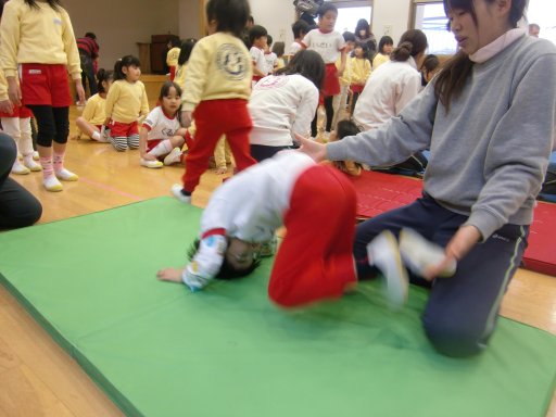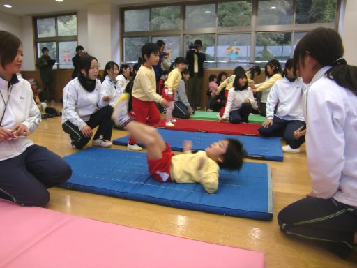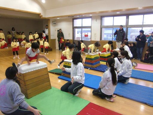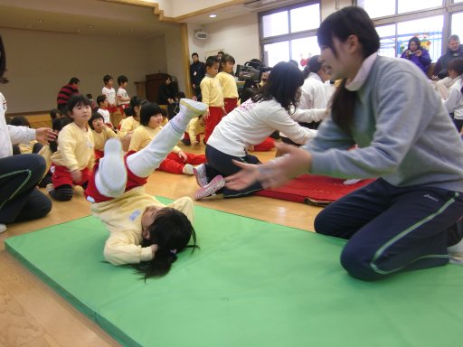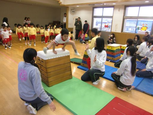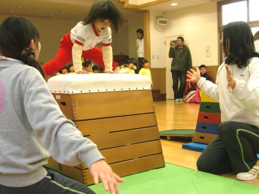身体をほぐしたあとは、マット運動・跳び箱を披露か!?