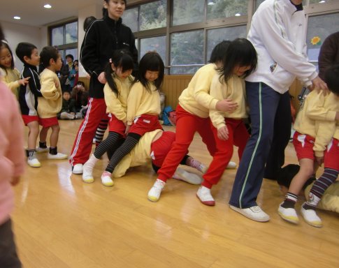 それを追いかける年中組さんと、小学生のお兄さん・お姉さんたち