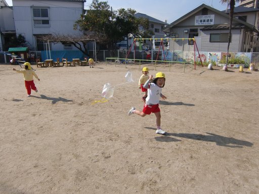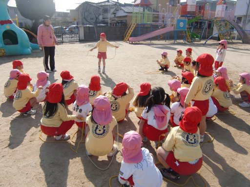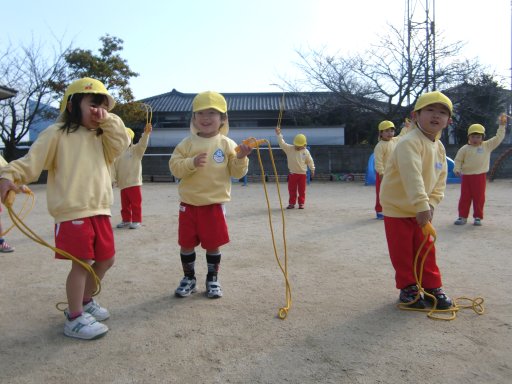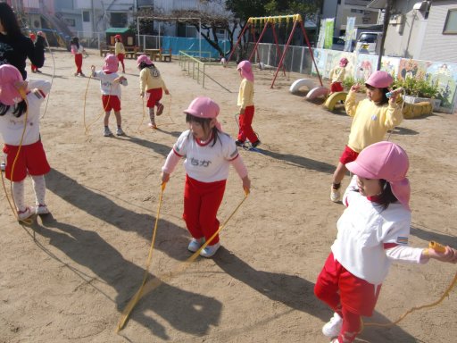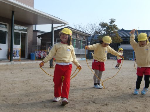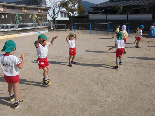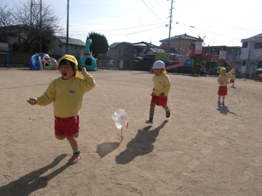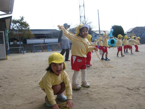 引き続き、なわとびを楽しむ園児や手作りの凧でたこあげを楽しむ園児、
