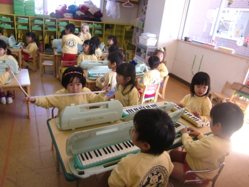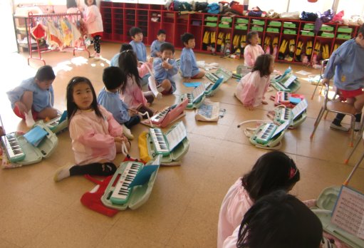 年中組・年少組さんはピアニカの練習をしました
