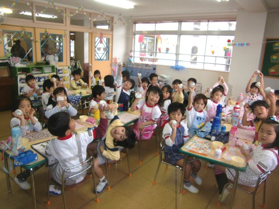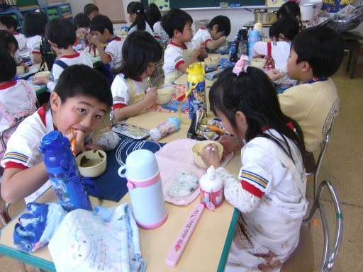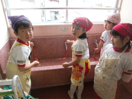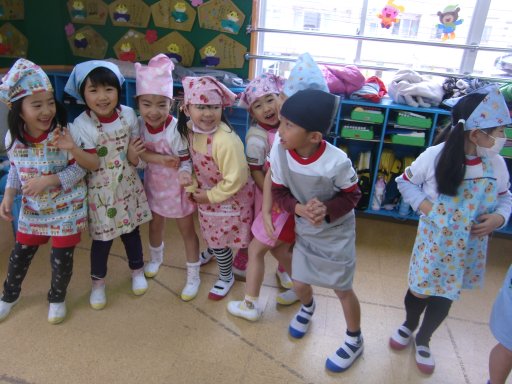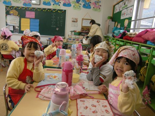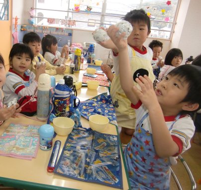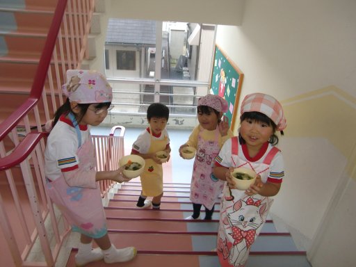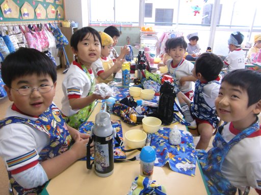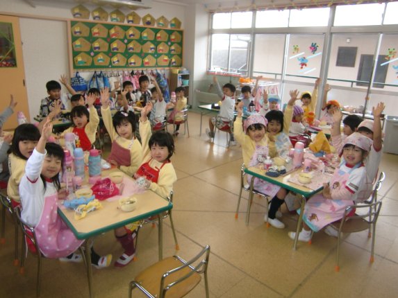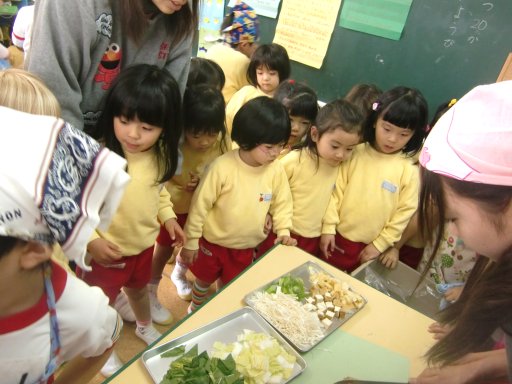 明日にクッキングを控えた年中組・年少組のお友だちが見学に!