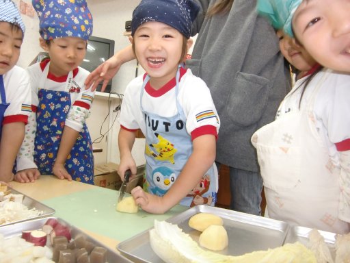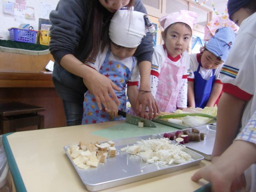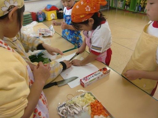(とは言っても“野菜は切れても指は切れない”包丁を使っています。)