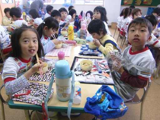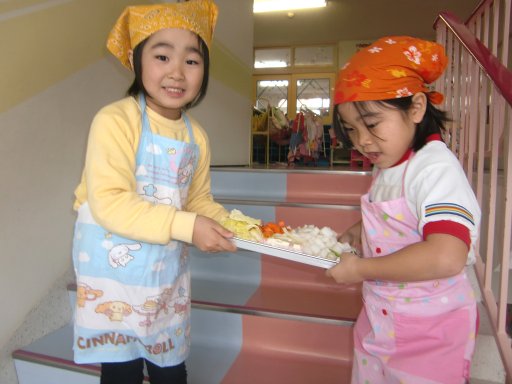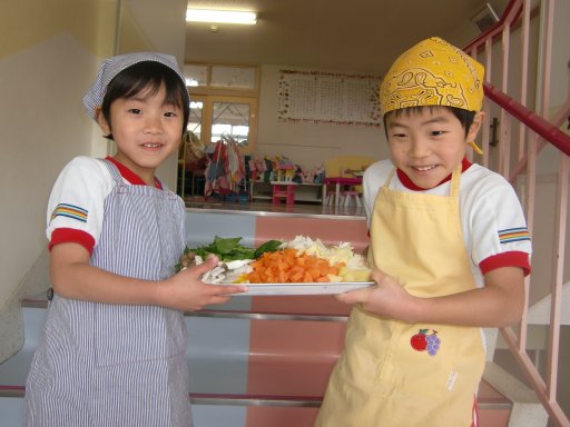 朝から自分が持ってきた野菜(みそ汁の具)を教えてくれた年長組さん!