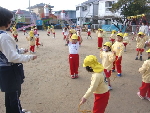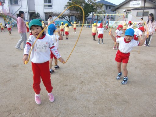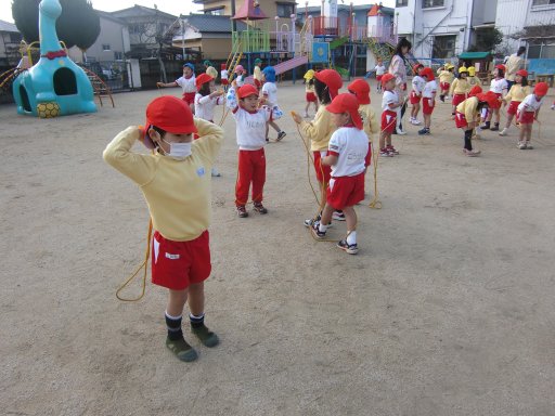 みんなでなわとびを持ち出し、園庭での“おはじまり”をしました