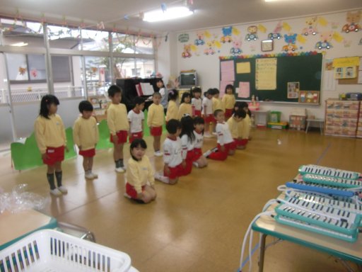 おゆうぎ室で本番さながらの練習も行っていますよ