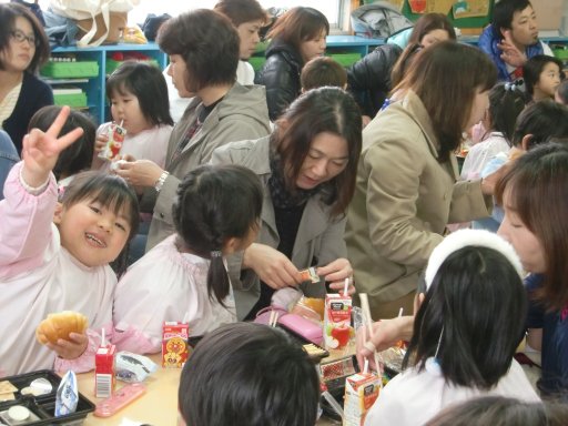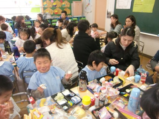 お昼ごはんは、お父さん・お母さんと一緒に食べました