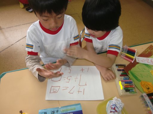 自分たちで算数の問題を出し合い、解いていました