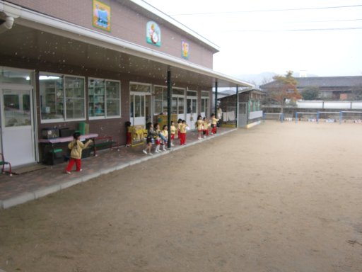 雪が降ってきて、大喜びの園児たち