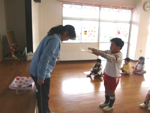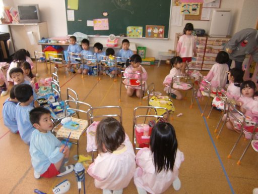 年少組さんで早くご飯を食べ終わった園児の中には、