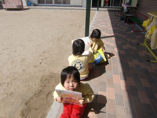 暖かい陽射しを感じながら、縁側?で絵本を読む姿も
