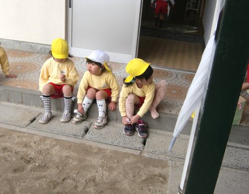 と、思ってたら水筒を片手に玄関に整列し出す年中組さん