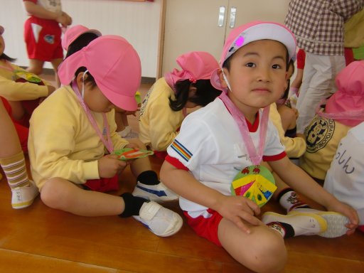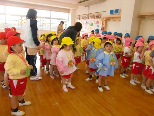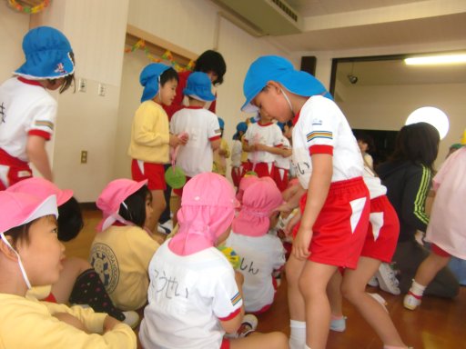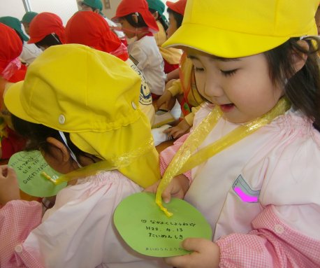 楽しみに待っている年中少組さんの首にかけてあげて、