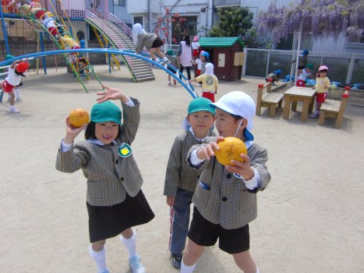 鬼ごっこやすべり台、そしてみかんを収穫したりと