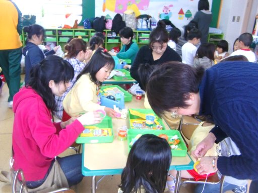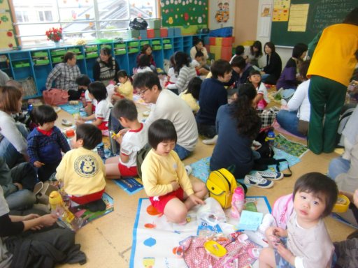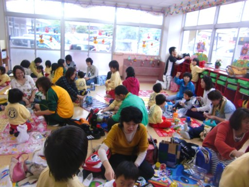 残念でしたが、親子登園はそのままに幼稚園での活動