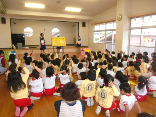 園児の人気者がたくさん登場し、紙芝居やお話に夢中でした