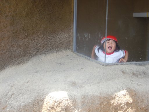 中に入り、透明のガラスからみんなを驚かせてくれた女の子