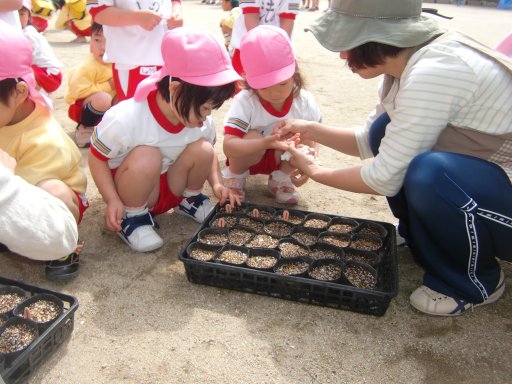 真上にいるモグラを見上げていた、さくらぐみのある女の子!