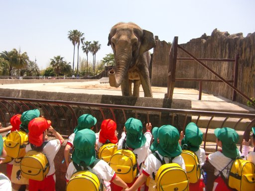 この像を見て、年長組の男の子、