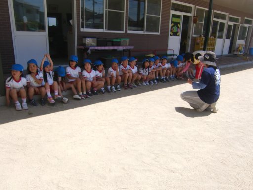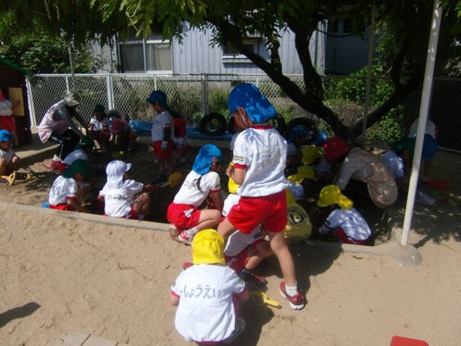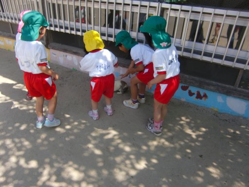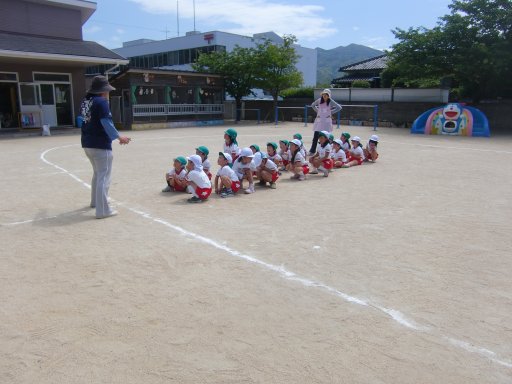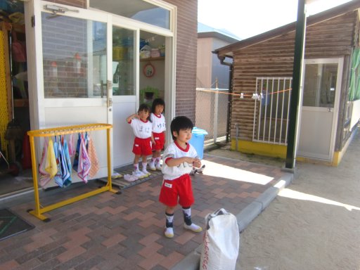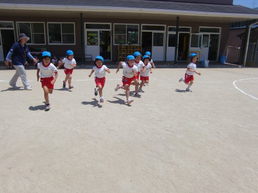 リレーの最中には、年少組さんもトイレに行く予定が思わず観戦
