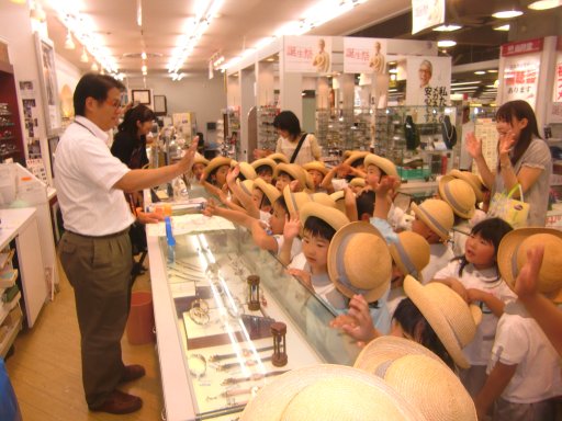 店内のたくさんの時計を見せてもらい、触らせてもらい、