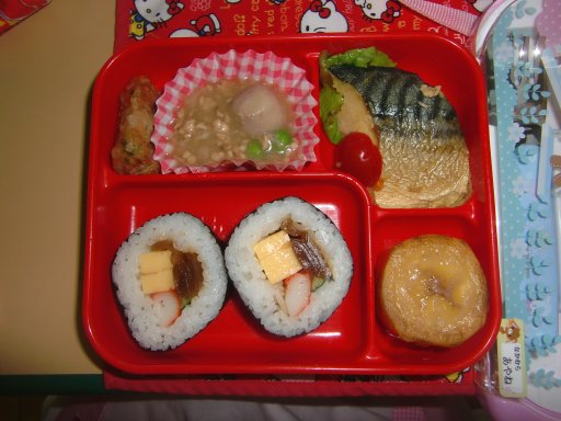 給食は太巻きのお寿司でした