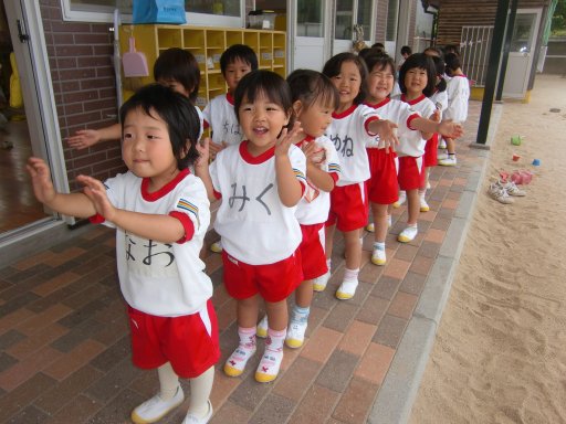 そんな中、一足先に外遊びを終えた年少組さんが整列