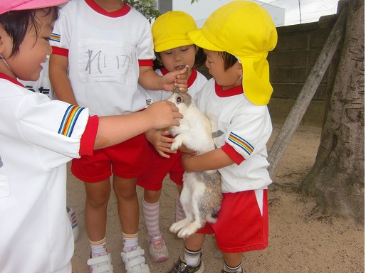 ウサギと遊んだり、恒例の裸足で鉄棒登り