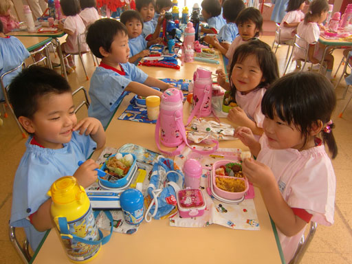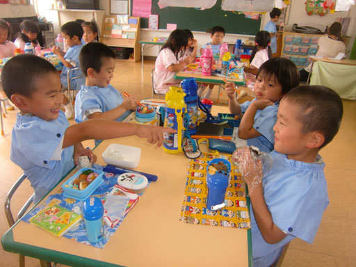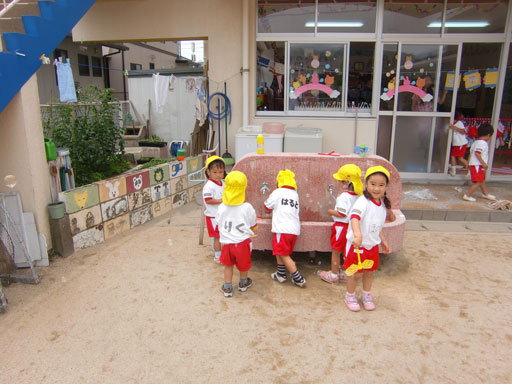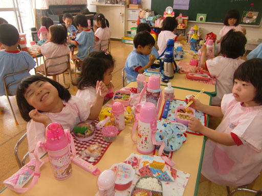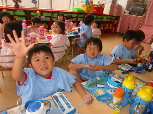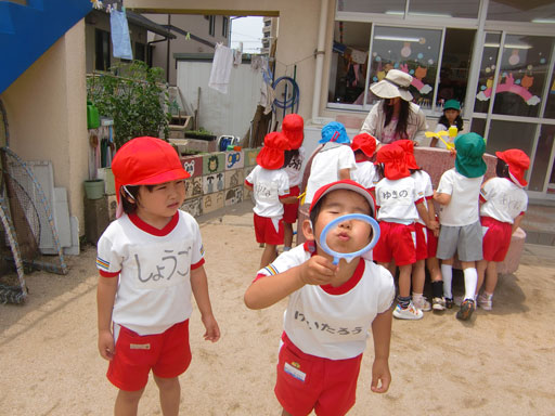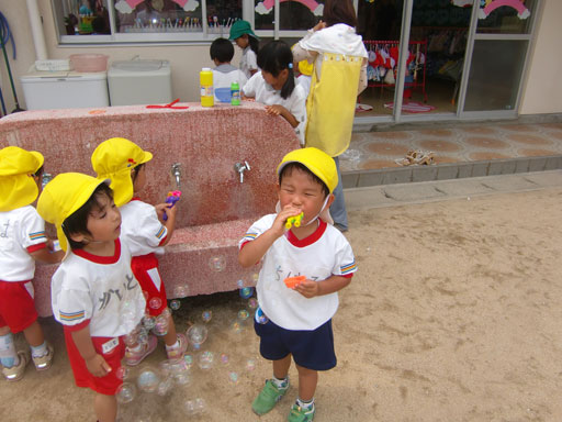 食後の外遊びでは、最近はやりのシャボン玉