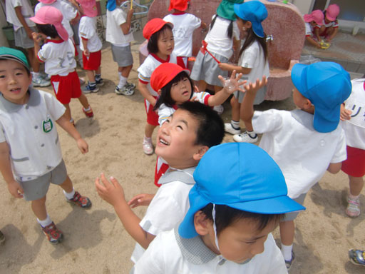 初めは年少組さんだけでしたが、外に出てきてその様子を見ると