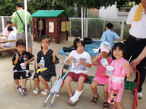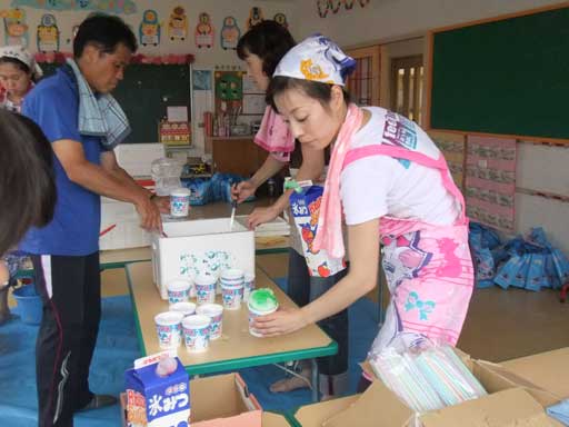 幼稚園に着くなり早速カキ氷や飲み物を