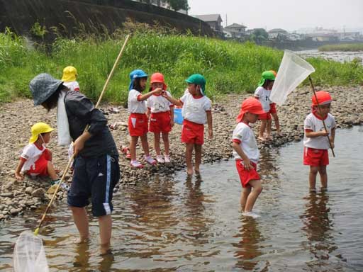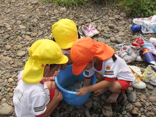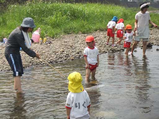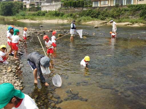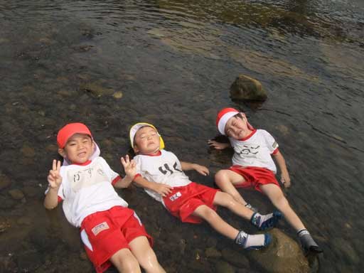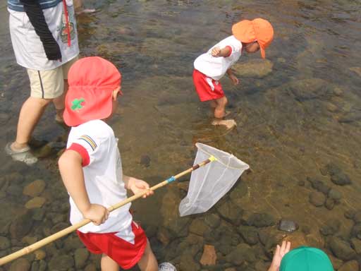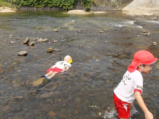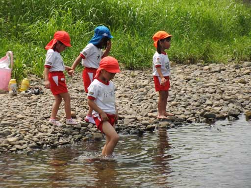 幼稚園での水遊びも楽しいけど、こうやって川に入って