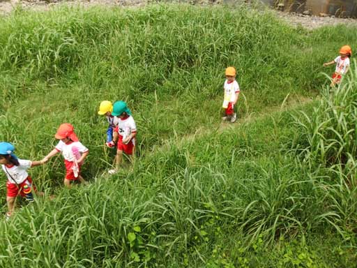 自分の背丈ほどもある草むらを通り、幼稚園へ!