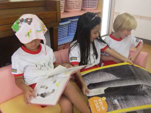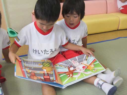 まだまだオープンしたての“えほんのへや”に入り読書を