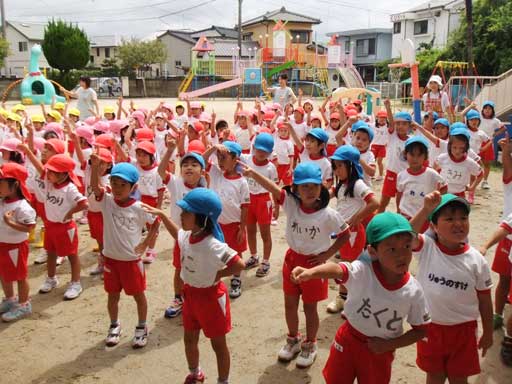 今日の締めくくりは、朝に園庭で“おはじまり”をできなかった分、