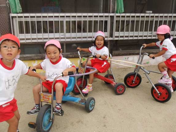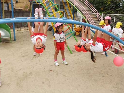 自転車や三輪車、太鼓橋での逆さまになるのが最近のお気に入り