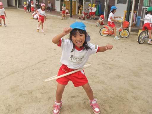 朝から元気に園庭でウォーミングアップ
