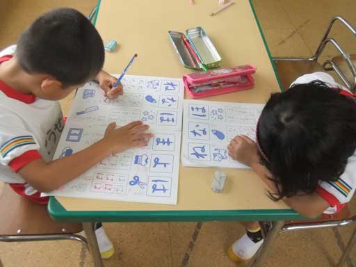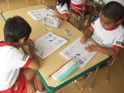 年長組さんは文字のおけいこ